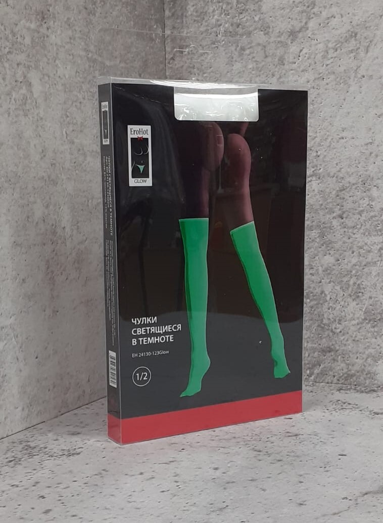 Тонкие шелковистые чулки под пояс, с элегантной минималистичной коронкой, которая легко впишется в любой стиль. Чулки хорошо сидят и красиво смотрятся на ножках. В верхней части изделие имеет широкую, уплотненную кайму для застежки. При дневном цвете изделие имеет белый цвет, в темноте меняет на флуоресцентный зелёный.