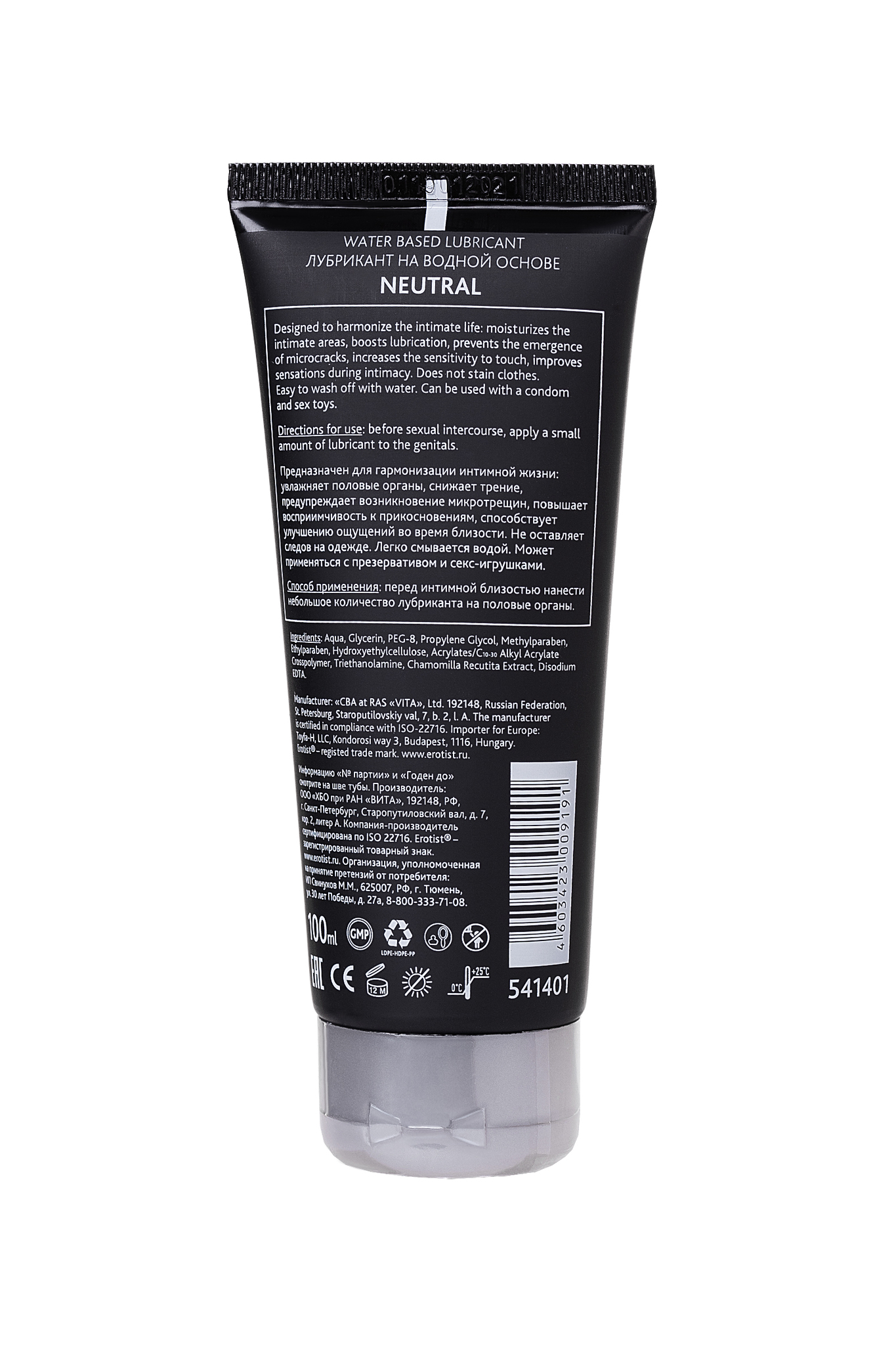 Лубрикант Erotist Neutral имеет водную основу, гипоаллергенен, совместим с презервативами и игрушками для взрослых, не оставляет следов и легко смывается водой.